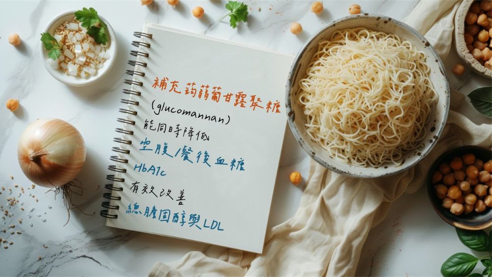 對於糖尿病患者來說,「控制血糖」一直是最重要的飲食目標,但你是否曾在健檢報告中發現,除了血糖偏高,膽固醇、三酸甘油脂也同時紅字?事實上,血糖與血脂往往是「連動型代謝失衡」,光控糖卻忽略降脂,等於只處理了一半的風險。最新研究指出,來自蒟蒻的天然水溶性膳食纖維——葡甘露聚醣(Glucomannan, KGM),不只穩血糖,更能降低LDL與總膽固醇,成為糖尿病飲食中不可或缺的「雙控幫手」。
