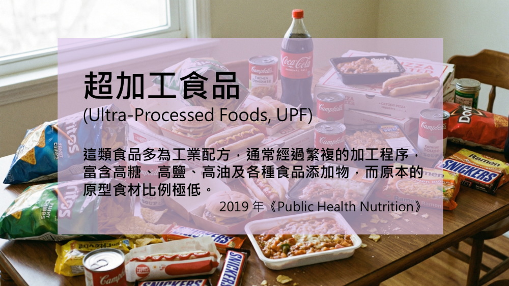 A: 指經過繁複工業製程,富含高糖、高鹽、高油及多種食品添加物(如色素、乳化劑),但原型食材比例極低的食品,如汽水、熱狗、薯片等。
