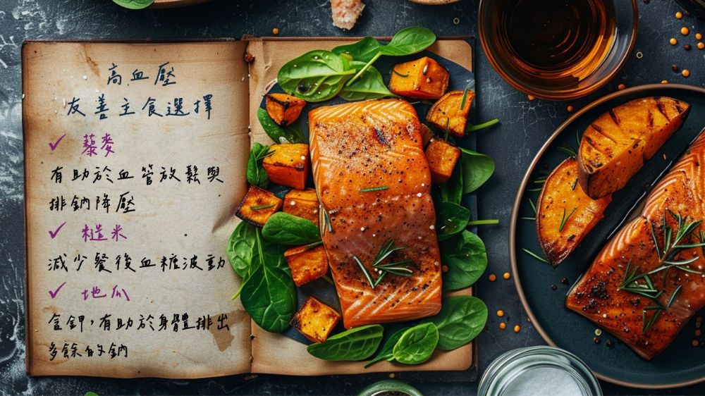 舉例來說,一份「藜麥飯+清蒸鮭魚+菠菜」的午餐組合,就能同時補充蛋白、鉀與抗氧化物,達到控鈉、抗發炎與穩壓三重功效。這樣的餐盤不僅營養密度高,也不容易造成血糖與血壓劇烈波動。